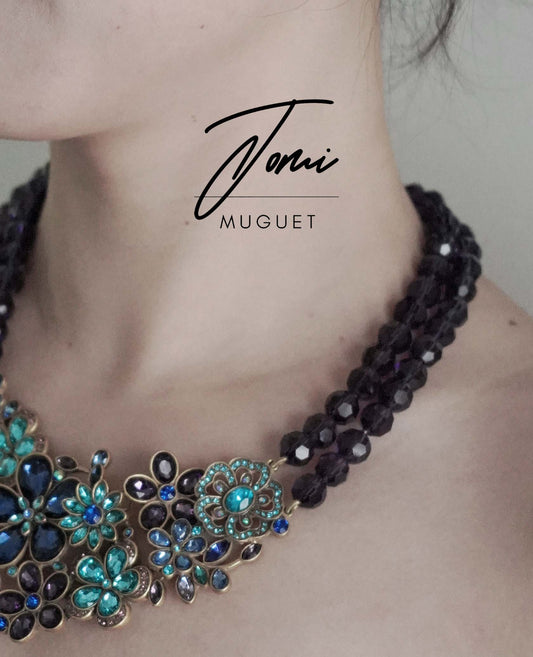 Sea Flowers blooming - Blue tone crystal necklace