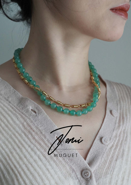 2 Ways - Natural green stones and gold plated spring necklace